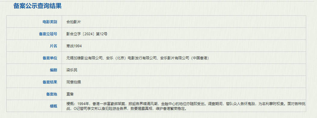 据悉,《寒战1994》《寒战1995》已于2024年同时备案立项。