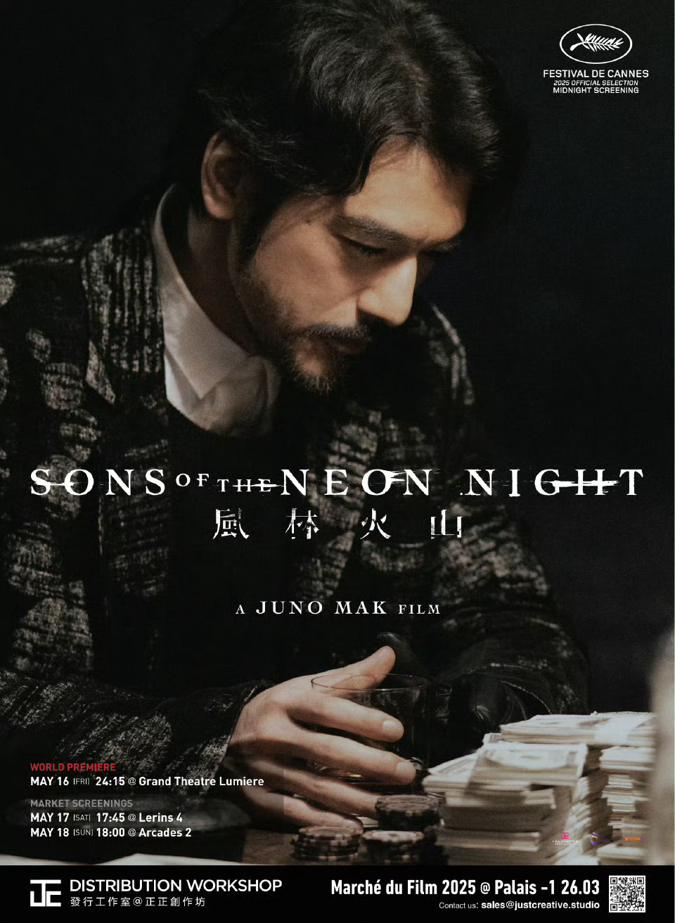 1905电影网讯 日前,由麦浚龙执导的电影《风林火山》全新海报登上戛纳场刊《Screen》。海报中,金城武独自坐在牌桌前,面前是一摞摞钞票和筹码,他手握酒杯,低头陷入沉思。